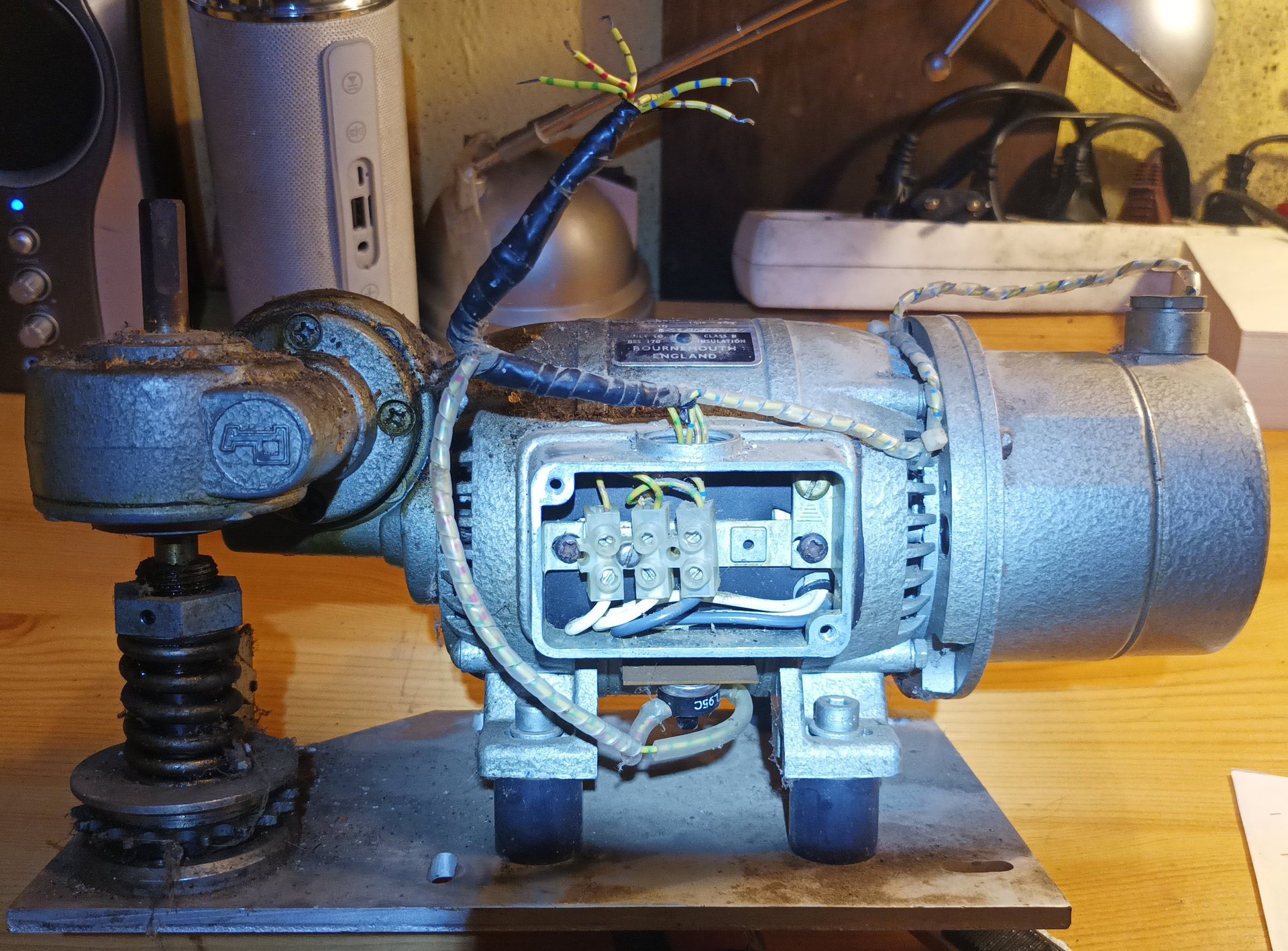 220V x 0.35A = 77 W az tényleg elég kevésnek tűnik... A 12V -os csavarozó azért mégsem, amikor van hálózati feszültség is. Talán egy régi mosógépmotor megteszi húsdarálóhoz. De azért már ezt is rendberakom. Jó lesz korongozóhoz (agyagozó koronghoz).