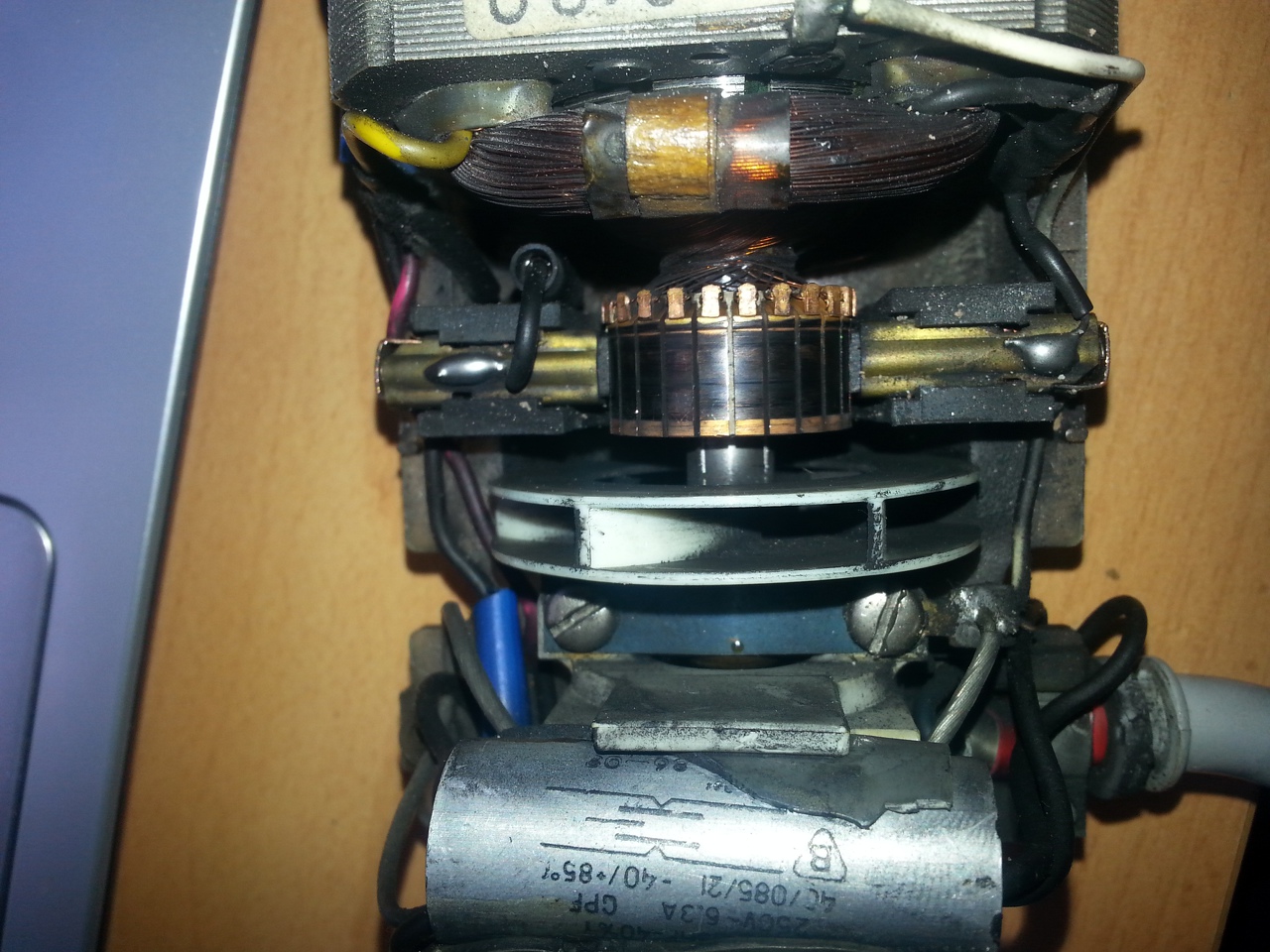 Olyan problémám lenne Hogy van egy rég ETA márkájú kézi habverő ami egyszer csak elkezdett kerhelni (kerreg) a gép működik csak kerreg meg büdös. Szénkeféket megnéztem szerintem még jók. A képeken látszik hogy a kommutátoron van egy sérülés az azért keletkezett mert a szénkefe tokozata hozzáért azt hittem azért is kerreg, de nem a kommutátorokon mértem ellenállást és 6.5-3 Ohm között változó volt. Szerintetek mi lehet a hiba?
