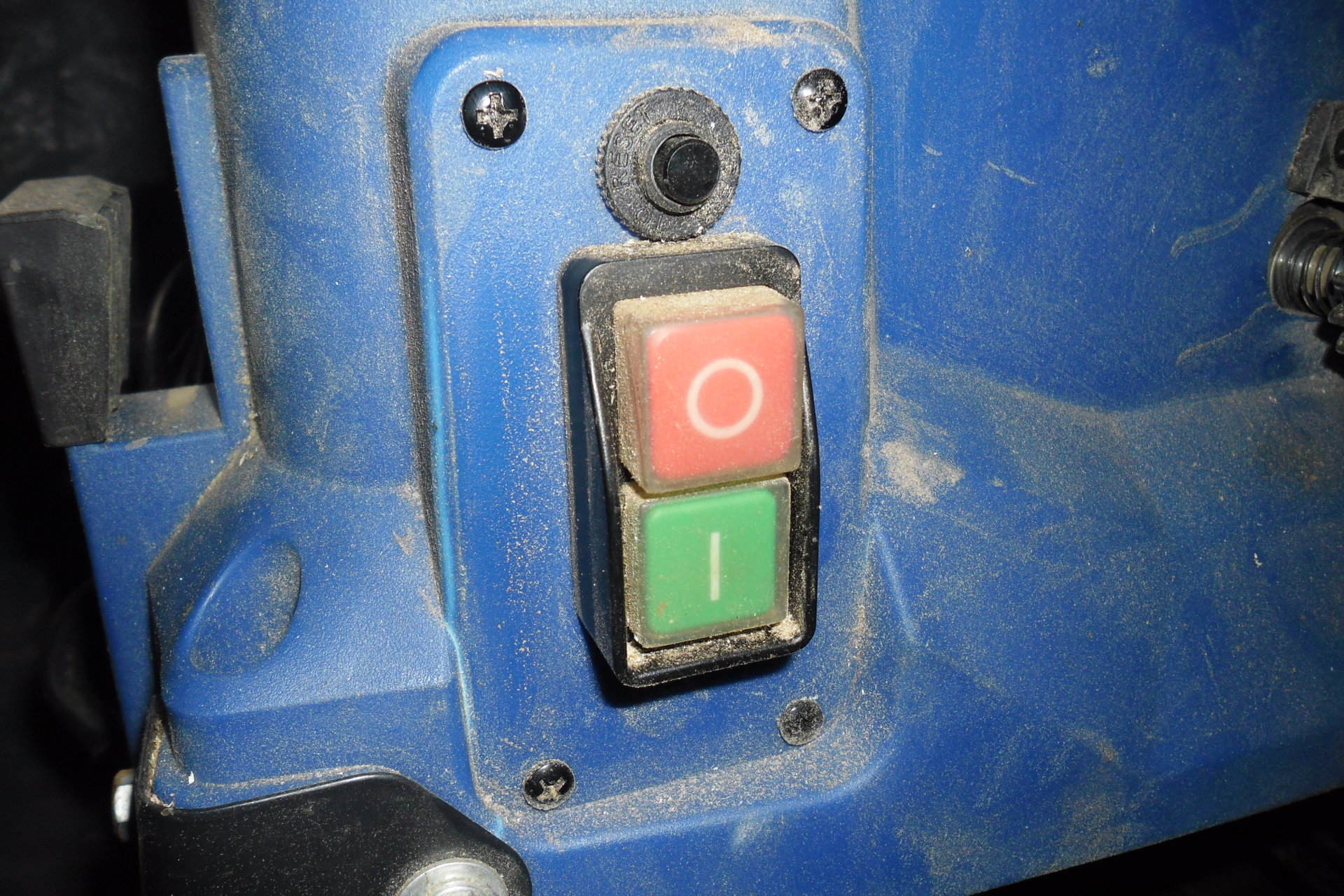 Szia! Valószínű, hogy a kapcsolóval lehet probléma ami ilyen lehet és felette az a fekete a túl áram védelmi automata gombja. Ha induláskor nem marad benn a zöld gomb akkor a kapcsoló hibás ha bent marad és nem indul, akkor a motor szénkeféit kellene kicserélni és kitisztítani a kommutátor szeletek közét ha azok egy szintben vannak a szeletekkel.