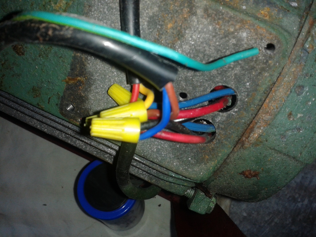 Ezt a problémát már pár héttel ezelőt feltettem, sajnos akkor nem rendelkeztem elég információval, hogy tudjatok segíteni.Most volt idóm és tüzetesen átnéztem a "kedves" darálót! ![]() A fórumtársak segítségét szeretném kérni a következő probléma megoldására: Adott egy húsdaráló, amit napi szinten használunk (édesanyám barmi hús feldolgozásával foglalkozik). A darálót a villanymotor ékszíj segítségével hajtja meg. A motor egy fázisról üzemmel, 2 segédkondenzátorral. A képeken felvan tüntetve a motor táblája. A vezetékek összekötése alapján felrajzoltam egy gyors kapcsolási rajzot. A színek nevei jelölik meg az adott vezetékeket amiket a további képeken láthatok. A probléma a következő: nincs megoldva a forgásirány váltás hiánya (ami nagyprobléma, ha a daráló berakodik) A hozzászólás módosítva: Nov 17, 2016