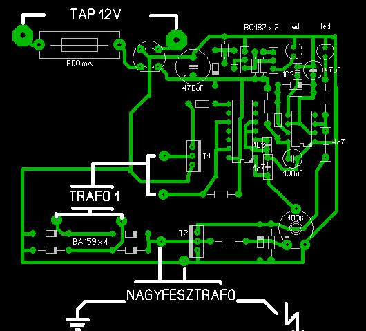 Kirajzoltam nagy nehezen, remélem nem néztem el. Amit le tudtam olvasni azt beírtam. A nagyfesz trafóra egy bazi nagy 10µF kondin keresztül csatlakozik. Az IC ről és tranzisztorokról lecsiszolták a feliratokat.. A diódahídnál és a T1 nél van megbarnulva a nyák. Gondolom a T1 purcant ki, de nem tudom mivel helyettesítsem.. ![]() Ha esetleg valaki ráismer az áramkörre és megvan milyen alkatrészek kellenek hozzá feltehetné, megköszönném...