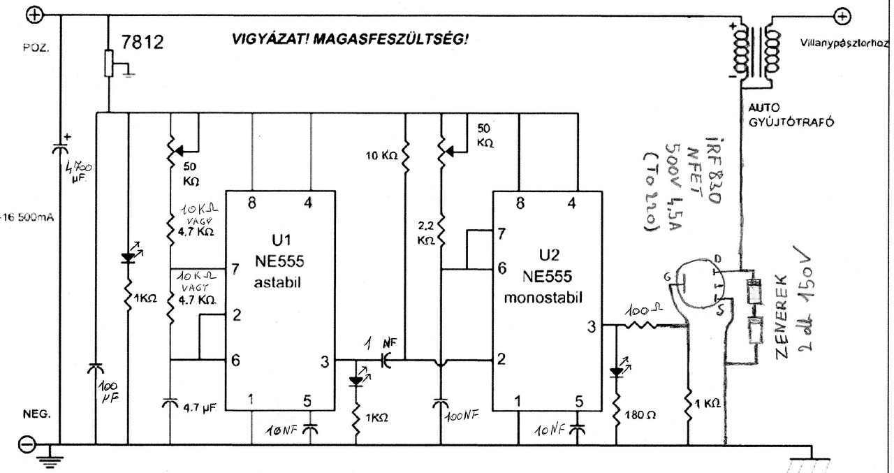 Bővebben: LinkSzia.Megprobálom belinkelni a kapcsolást.Ennek a kapcsolásnak a második felét használtam egy 2om kondival és tekert trafoval.Az első felére 2 trafot ,2x22o per 12v kötöttem őssze.