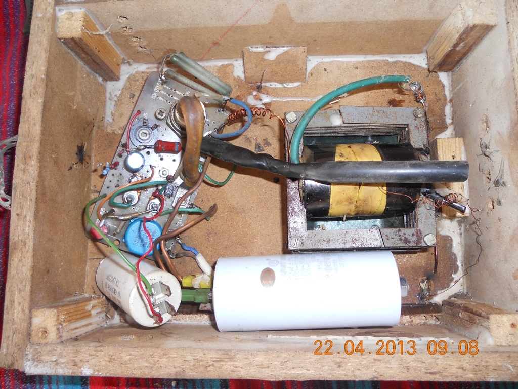 Nekünk ugyan ez egy veszélyes hulladék, de a gazdája örül, hogy ezt is be tudta szerezni. Rá nézésre az egyik gyenge pont a trafó, mert mielőtt nagyot ütne áthúz önmagában és akkor kifelé nem is sok jut az energiából.. A képet nézve még a hálózati szűrő tekercs is be van iktatva. Jó "combos" Tirisztor is van benne. Kondenzátorból ehhez a konstrukcióhoz elegendő lenne 10-20uF. De ez csak az én szubjektív véleményem.