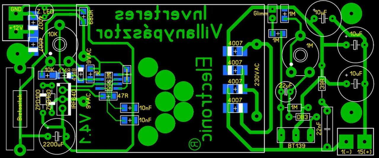 Kicseréltem már az öszes alkatrészt és átnéztem a nyákot min.10x de nem akarja az igazat. egyenlőre a vezérlés sem indul el, de a kimeneti oldal szerintem jó mert ha 12v-ot adok a trafónak akkor a glimm világít