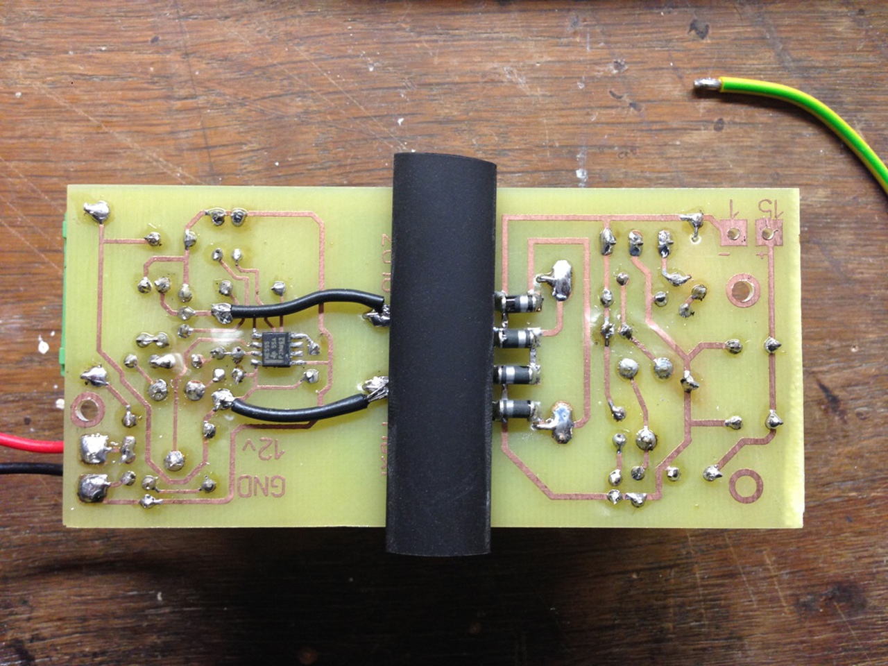 Bocs, hogy belevaú. nem látszik ugyan teljesen jól az a rész, de mintha a jelöld diódán a jelölés jobb oldalt lenne, holott a túloldalon kellene legyen a terv szerint. Érdemes ellenőrizni.