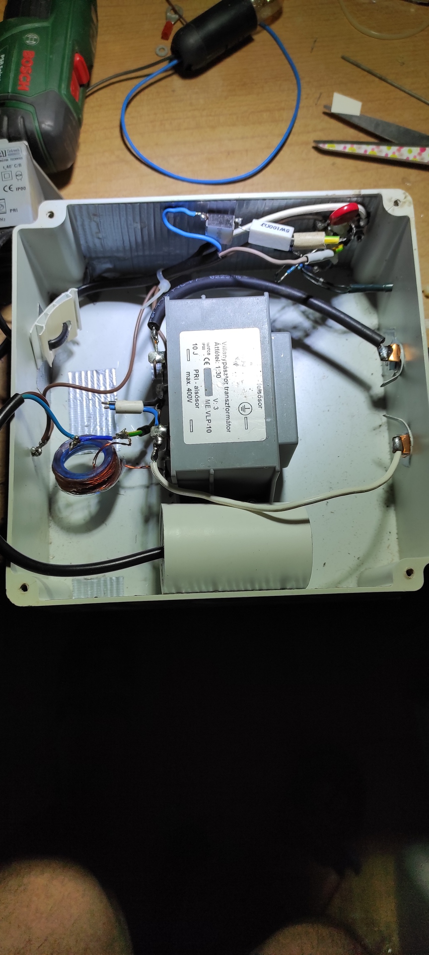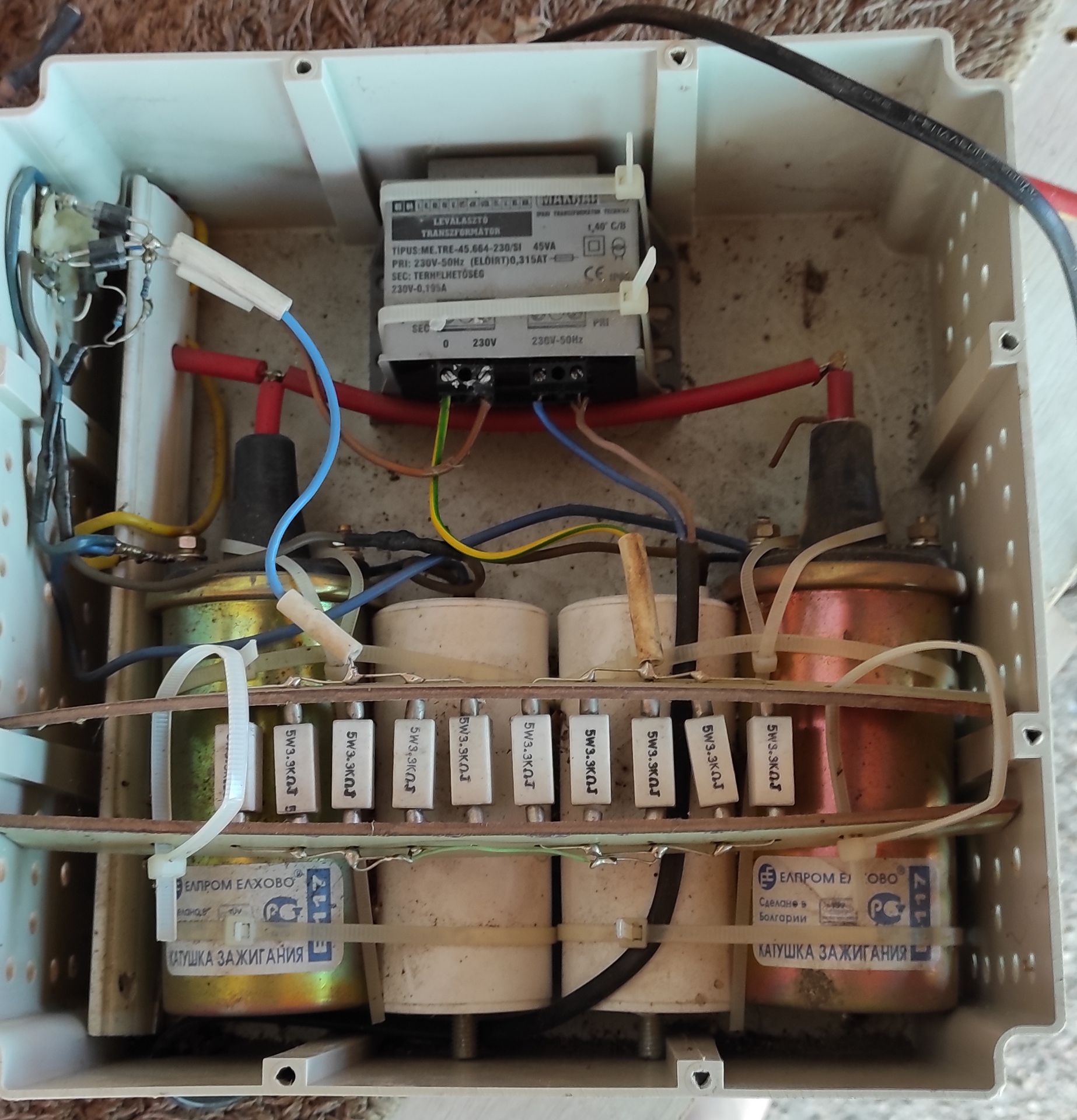 Ez a készülék a farm nevet viseli. Szép gyári ra hasonlító külső egy gagyi kókány munkát takar. Külön megmosolyogtam azt a kínai fényfűzérből bontott kék LED et, amit a magasságos gyártó impulzus visszajelzőként hasznosított újra. Úgy hirdeti hogy makrai féle villanypásztor trafóval van szerelve de közben egy 400 per 24 voltos leválasztó transzformátor van benne. Utánanéztem a makrai oldalon a gyár abszolút nem készít ilyen jellegű transzformátort. Típusjelzés beírására nem ad ki semmit a net. A hozzászólás módosítva: Aug 1, 2022