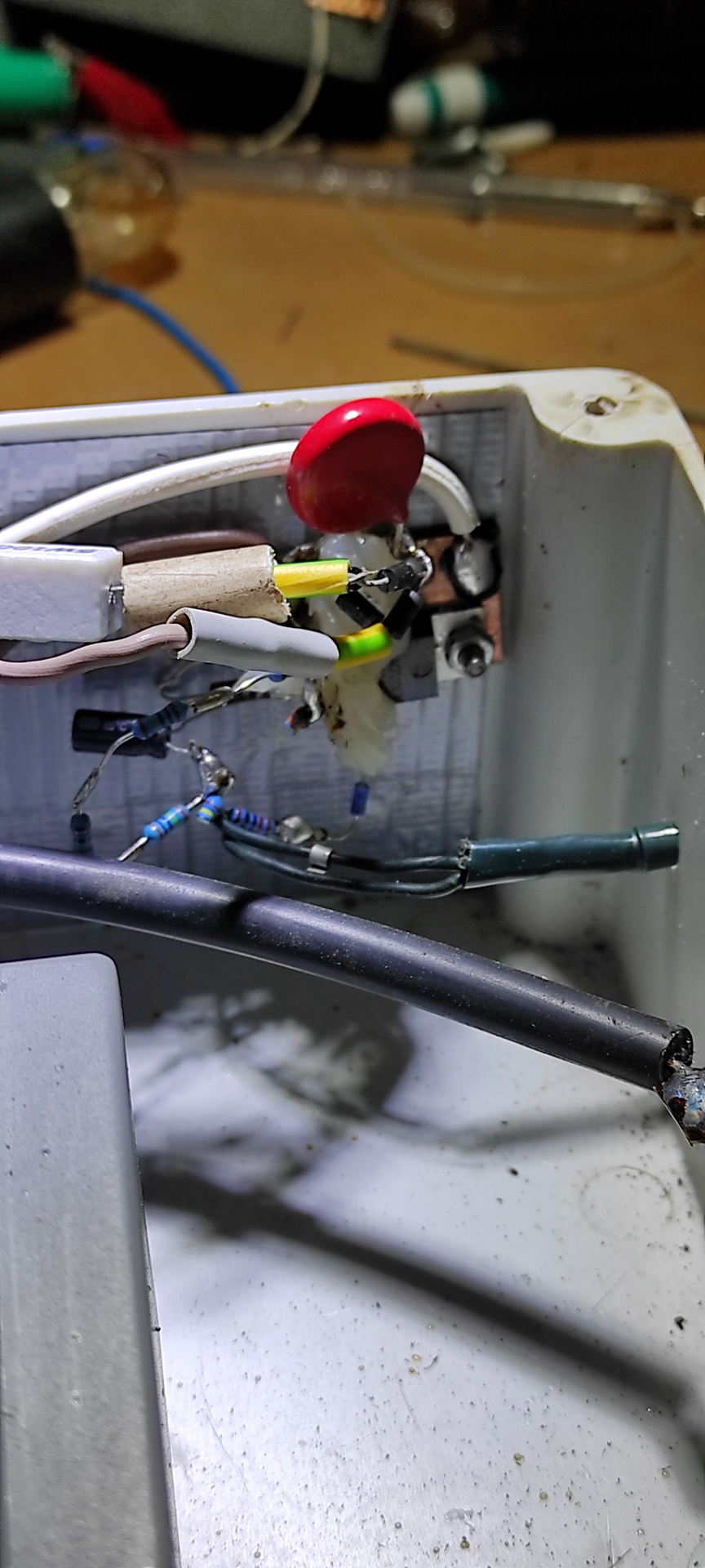 Ha azt vesszük alapul hogy maga az egész áramkör rendkívül egyszerű, így még talán hasznosabb is hogy légszereléssel készítette az illető, ugyanis így majdhogynem örök élet meg egy nap..