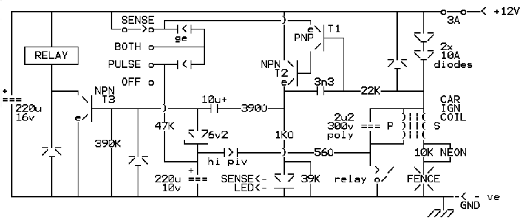Én ezt a kapcsolást raktam össze most próba képpen, egész emberes szikrát ad. Nem olyan mint amit idáig csináltam. Igaz hogy 1µF helyett nagyobbat tettem be. Csak a megszakítót kellene kiváltani valahogy hogy kb. 2 mp-ént adjon szikrát. Ezen még agyalok. De ha valakinek van jó ötlete...............?