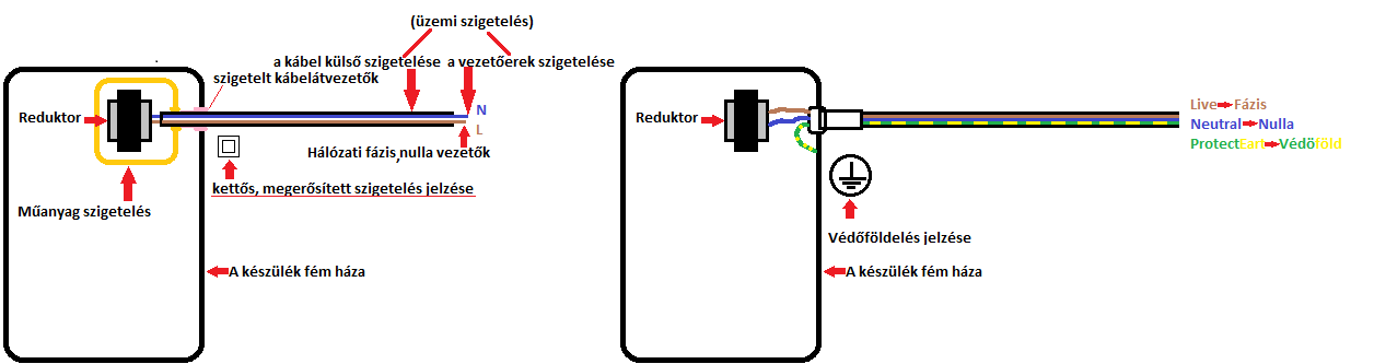 Szóval a lényeg hogy mivel a földre kerül a kettős szigetelésű készülék háza ezért valami áram folyhat benne mert hát a földvezetékben is folyik valamennyi. (földhurok, stb.)