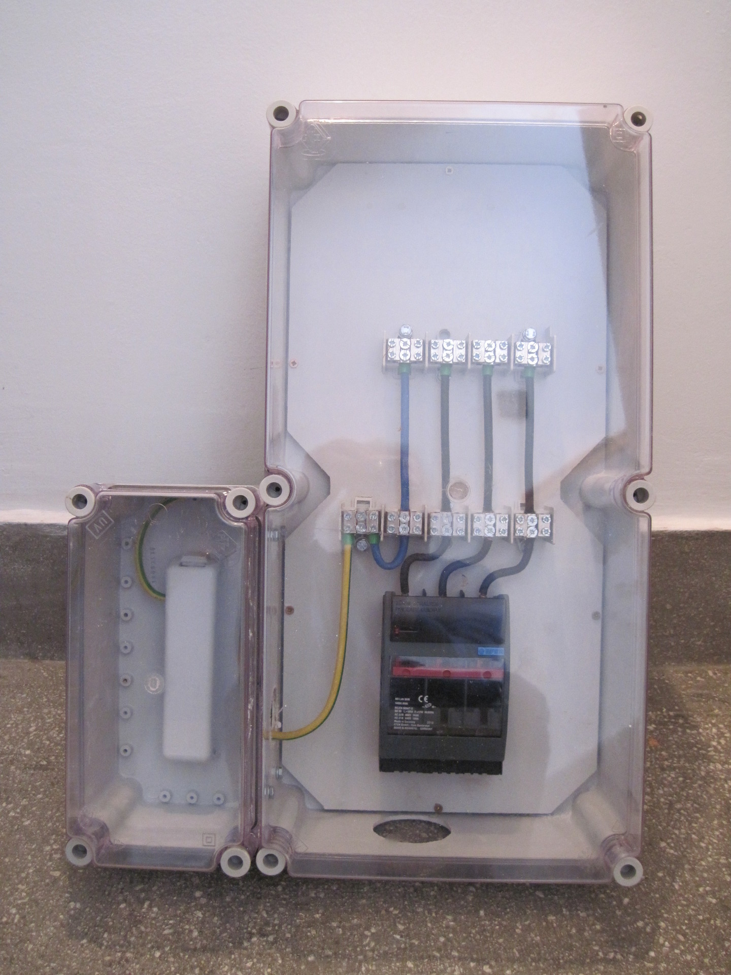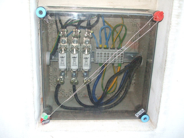 Föld kábelen jön be a 3 fázis egy alumínium dobozba jelenleg.