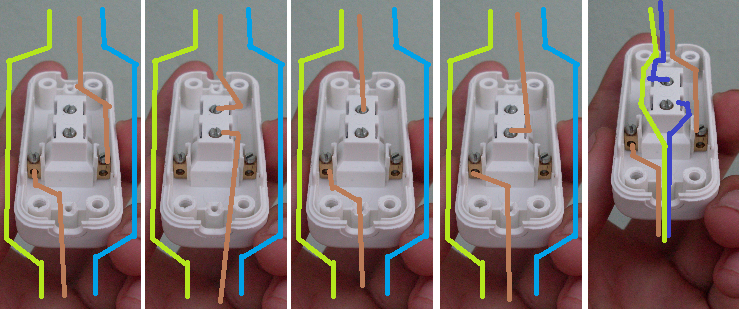 Én úgy csinálnám, hogy bekötném a csatolmányban lévő módok szerint, azaz rögtön nem vágnám el a fázist és a nullát, csak az egyiket, és végigpróbálnám az első négy variációt. Ha igazam van a bekötést illetően, akkor az első két esetben ki/be tudod kapcsolni a fogyasztót, a második kettőben nem, és az ötödik lenne a végleges. Ha nem, írd meg melyik bekötésre hogyan viselkedik, abból ki lehet totózni a bekötést. A földelést szigorúan tilos megszakítani! Vedd figyelembe azt is, hogy egy ilyen kapcsoló csak ohmikus terhelést (pl. izzólámpa) tud biztonságosan kapcsolni abból is csak 400-500W-ot max., induktív/kapacitív (villanymotoros dolgok, számítógép tápegység, nagyteljesítményű trafós dolgok) terheléseket hosszabb távon a kapcsolópogácsák beégésével "jutalmazza".