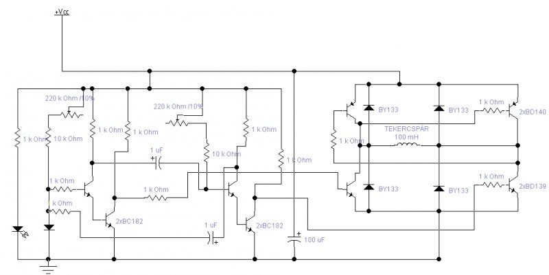 Nagyon tetszik ez az elképzelés a proci vezérléssel. Talán ott is az lenne a jó, ha a H-hidat ugy vezérlelné mint az astabil tudta. (Áramirányváltás a végpontok közelében.) Ha ezt meg lehetne igy valósítani, az már nagyon komoly eredménye lenne a fejlesztéseknek..Az is foglalkoztatott még, hogyan lehetne egy optikai vezérléssel a H-hidat kapcsolgatni? Nem lenne ez sem elvetendő megoldás, ha tovább lenne gondolva, vagy ez is a prociban?. Szia.