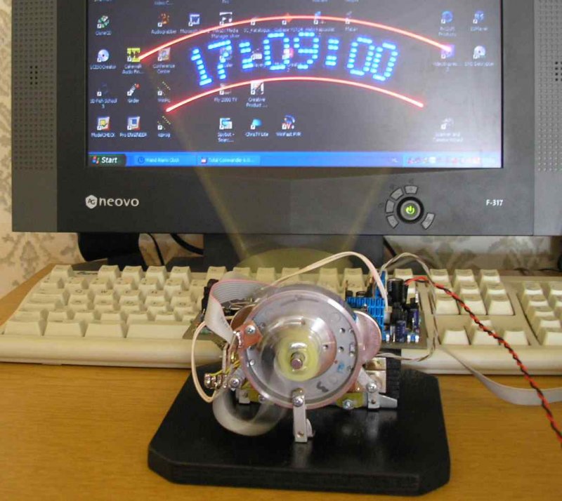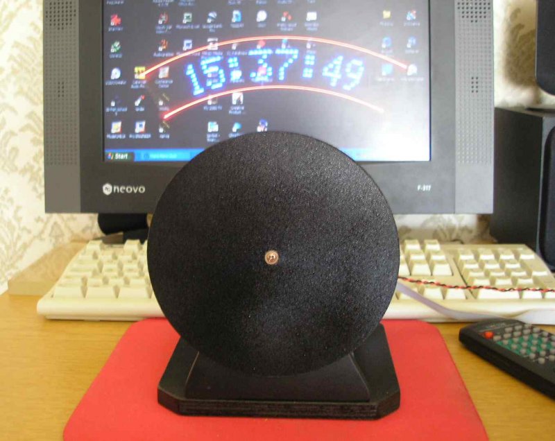 A mechanikát összeraktam, már a kétirányú kijelzés áramkörével hajtva, (f886). Elég érdekesen kezdett el működni, le kellett szabályozni a Wand áramát ”100”-as értékre. Ez kb 4.9V. Ekkor itt csak 16.2Hz-en sikerült berezgetni, 280mA lett az átlagos áramfelvétele, plusz a LED-ek árama 30-50mA(?) Ez az áram jóval több, mint a korábbi mért értékek, (labortáp), de a feszültség arányosan kevesebb lett. Nagyjából elfogadható ez a meghajtó teljesítmény is. Egy feszültségprobléma akkor kezd el jelentkezni a stabilitásban, ha még tovább csökkenteném a Wand meghajtó áramát. (Itt a Hall IC feszültsége kb. 5V-os szint alá nem mehetne, mert bizonytalan lesz a szinkronizálása a rezonancia-frekvencián, vagyis nem lesz stabil a rezgés). Erre érdemes odafigyelni az áramkör élesítésekor. A kar kiegyensúlyozása nagyon fontos, ez esetben elkerülhető a nem kívánt berezgés, rezonálás. (Ha a kar síkbeli rezgés közben minden mozgó koordináta pontja merőleges a forgástengelyre, tökéletes lesz a rezgés, erre kell nagyon, de nagyon odafigyelni). Ezek után nem kell leszorítani, vagy lerögzíteni a szerkezetet, egy régi ”egértalpra” helyezve, jól be lehet a kétirányú kijelzést is állítani, amely maradandó lehet, de a hőmérséklet változására el tud ”kicsit” menni. Ezt korrigálni kell időnként. Néhány felvétel működő kétirányú kijelzéssel, a mágneses rendszerű Wand clock egy lehetséges megoldásával. (Még erre egy burkolat elkészítése hátra van, de kell az erős mágnesek miatt is…). Még egy fontos megjegyzés a ”Neodym” mágnesekkel kapcsolatos előírásokról Itt: