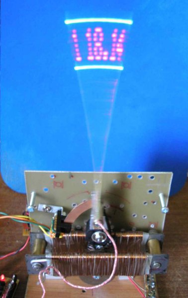 Kicsit még foglalkoztam ezzel a ”másik” megoldással, valamivel jobb most a rezgés minősége. Teljesen sík lett a kar lengőfelülete, így már sokkal szebb. Most olyan a kijelzésen a karakterméret, mint a korábbi mechanika kísérleteimnél volt. (Ugyanaz az f628 tesztpanel működik ennél a megoldásnál is). A húzómágnes mostmár a lengőmágnessel dolgozik együtt, (ez félig belógatva, a lengő az oldalánál mozog), így talán akkor lehetne még tökéletesebb, erősebb a magasabb frevenciákhoz,, ha a másik oldalon is lenne egy hasonló mágnes elhelyezve a tekercsek légrésében. Még néhány felvétel a működésről.