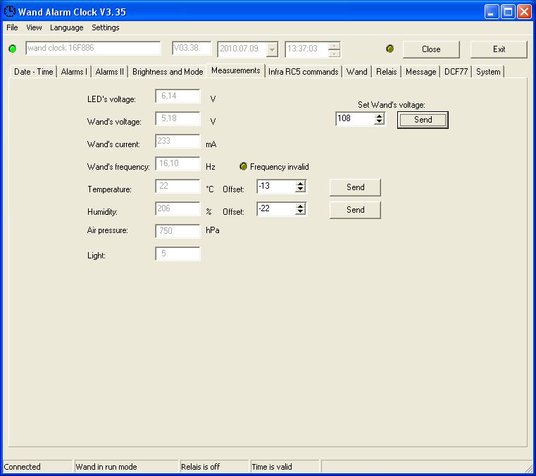 Hibátlanul megy folyamatosan a mágneses felépítésű Wandom. Nem tapasztaltam semmilyen elváltozást, csak néha egy ”egységet” kell az offseten állítani a kijelzés együttfutásához. (1-2 fok változás szobahőmérsékleten, akkor már kell igazítani). Az üzemi frekvencia, (ez most hosszabb kar), 16Hz, 220-250mA/5.2V meghajtó teljesítménynél, kb. 55 fokos kitéréssel.. Már inkább örülök, hogy ilyen erős mágnesekkel oldottam meg a mechanikai rugólemez helyettesítését, nagyszerű és stabil, de különösen csendes működése lett a golyóscsapágyas szerkezettel. Néhány kép a ”Wand” beállításairól, feszültségekről, áramokról.