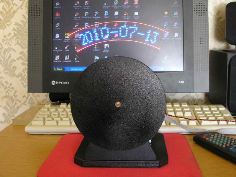 Folyamatosan megy a rugónélküli mágneses felépítésű Wand clock már lassan két hete. Ugyanolyan a kitérés mértéke, (42-44 fok), de ez is soknak tűnik a kijelzéshez és a levezetésem tartósságához. Lejjebb már nem nagyon tudok menni, mert bizonytalan lesz a rezgés stabil indítása, vagy elindul, vagy csak remeg a kar 4.6V alatt. 5V-tól már valóban nincs gond a rezgéssel, de szerintem az amplitúdó még ekkor is sok. Így ki fog derülni az is, meddig bírja a 10 eres szokványos szalagkábel a folytonos hajlításokat 16 Hz-en A szalagkábel-csatlakozó hajlítási pontja a forgástengelyhez a lehető legközelebbi helyre van szerelve, így a legkisebb az igénybevétele az elvezetéseknek. Ide csak új szalagkábelt lehet alkalmazni, mert a régiek felkeményednek egy idő után, ezért nem lesznek már alkalmasak a levezetéshez. A frekvenciát is jelentősen csökkenthetik a rugalmatlan minőségromlásuk miatt, ezeket már egyáltalán ne használjuk levezetéseknek.Egy kis "dizájn" már látható az óra profiljáról is. Néhány felvétel a működő Magnetic-Wand-ról.