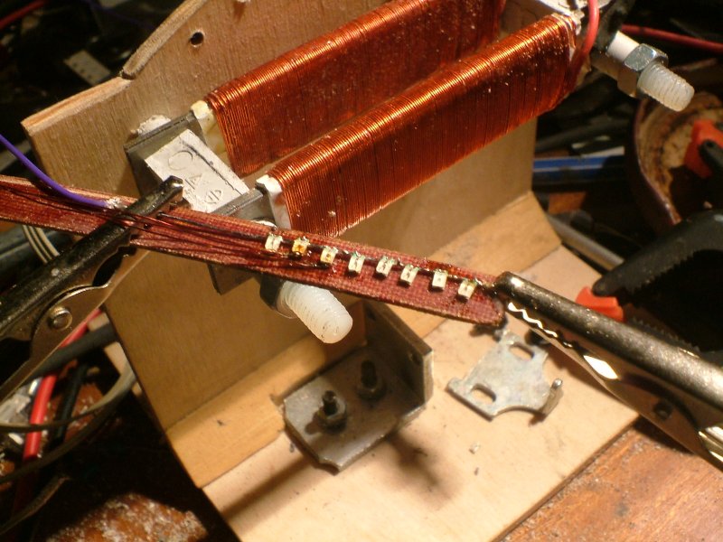A kijelzőt én igy csináltam hagyományos 3mm tisztafényű vörös LED-ekből. Ha lenne SMD LED-em, akkor teljesen egymás mellé forrasztanám őket.