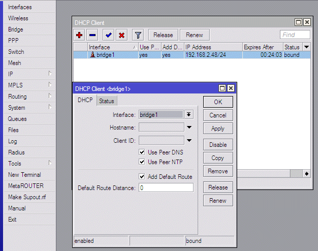 Ja és ether1-et érdemes DHCP kliensnek is beállítani (vagy fix IP-t hozzárendelni), hogy kényelmesen (IP alapon is) el tudd érni a hálózatban.