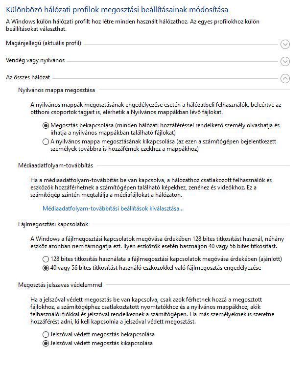 Felcsatlakoztam a hálózattal 5db win10-es géppel és minden gépről minden gépet el tudok érni leszámítva az egyiket.