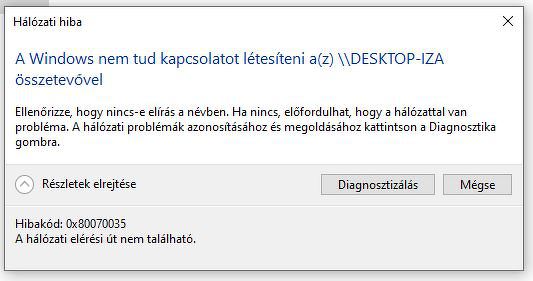 2-es gépről nem érem el egyik gépet sem, viszont minden más gépről elérem a 2-est, a megosztott mappákat látom, tudom írni/olvasni. Ha a 2-es géppel akarok csatlakozni a hálózat bármely gépére ezt az üzenetet kapom (kép) A hibakód alapján az összes lehetséges hibamegoldását végigzongoráztam ez alapján: LINK Lassan ott járok, hogy újratelepítem a windowst, de ez lenne az utolsó megoldás, mert elég sok szoftver van a gépen, amit sok idő újratelepíteni. A hozzászólás módosítva: Dec 13, 2020