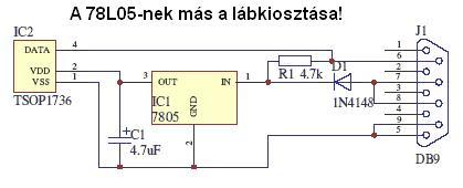 Összeraktam én is EZT a kapcsolást a Girder nevű programhoz, de ha rá dugom a soros portra, akkor max. 1,2V ot mérek a TSOP1738 tápfeszültség lábain, ez miért lehet? Terhelés nélkül 12V jön ki a soros portból. Bár az 5V-ot 7805el oldottam meg, mert nincs zenerem, lehet emiatt ekkora feszültség esés?