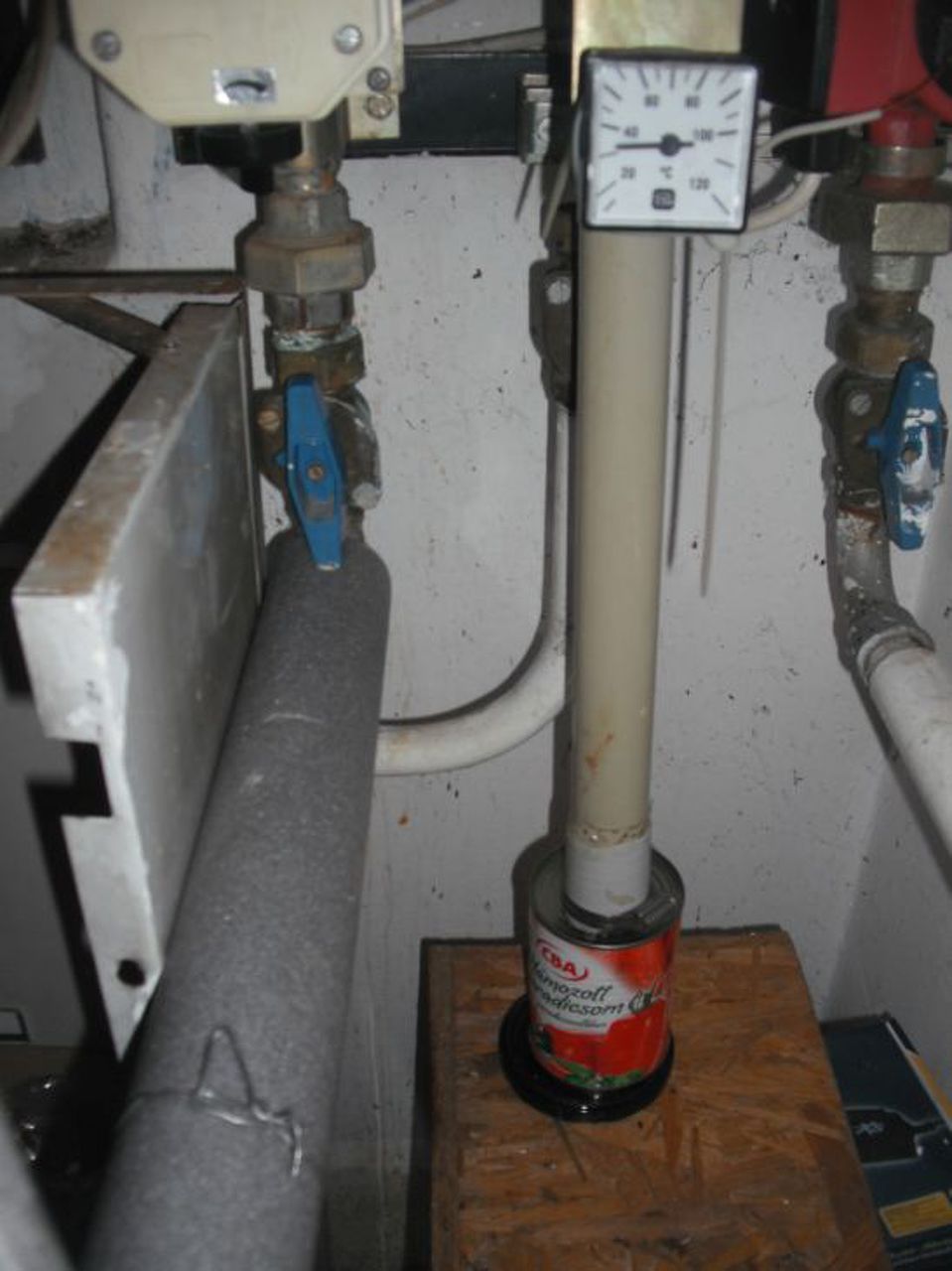 Most szépen megy a kazán. Kellett egy fa láda egy savanyúságos üveg kupak lefordítva rugó helyett, és egy cba paradicsomszósz, és egy ETA porszívó cső a magasság miatt...