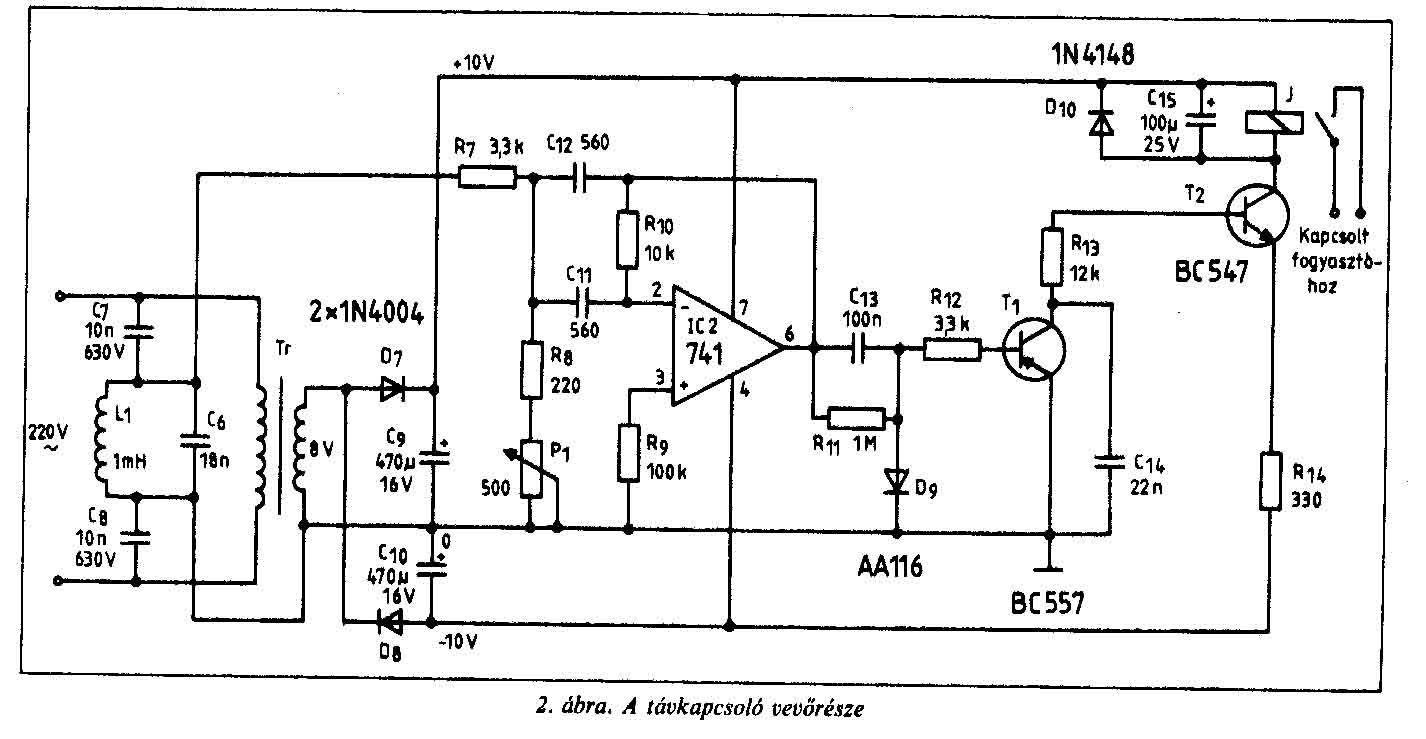 Hogy témához valót is írjak, összeszedtem emlékeimet az áramkörröl és kb úgy volt, hogy egy dugasztáp adta a feszt egy osszcillátornak ami valami leválasztással csatlakozott(talán valami kondi) a 220-ra, a vevő pedíg a kellő frekire behangolt dugasztápos vevő egy relével...valahogy így volt....