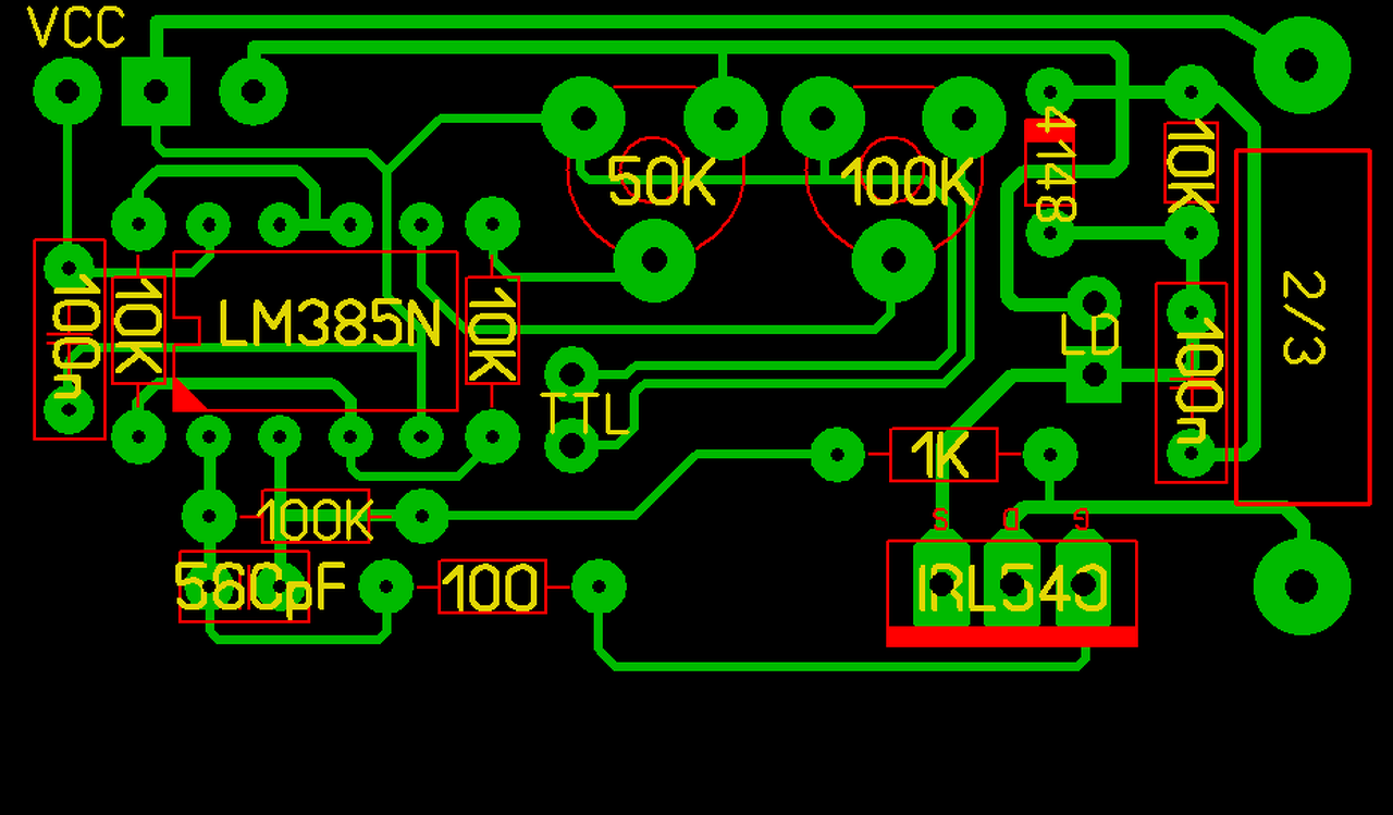 ![]() - Mert most az R7 nincs a forrásra kötve. - Az jól hangzik, hogy más tápja is lehet a diódának, csak éppen erre a feszültségre van kötve az R8 poti a +5V helyett. - Egyébiránt volt itt az oldalon egy igen szépen megtervezett nyák. (Szerintem kisebb is volt, ha már ez a gond, de most nem látom..) És az eredeti rajzon még egy biztonsági tranyó is volt és az ominózus "küszöb poti" 10k volt, ne 100k. Mert ha most azt megtekered, akkor elmászik az, amit beállítottál a másik potin. (Egyébként is, de így nagyon.) Nem tudom néhány alkatrész spórolása miatt miért kel valamitől eltérni..